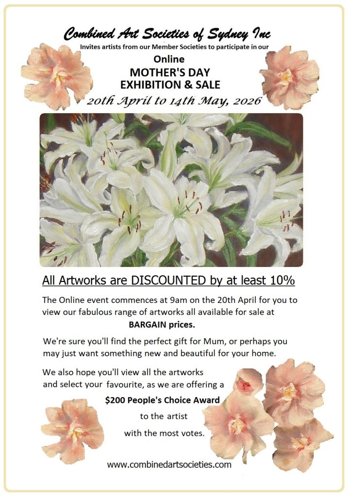 Following the success of the recent Art of Sydney events organised by the Combined Art Societies of Sydney, they now have another ONLINE event organised in which many of our Oatley members are participating in.